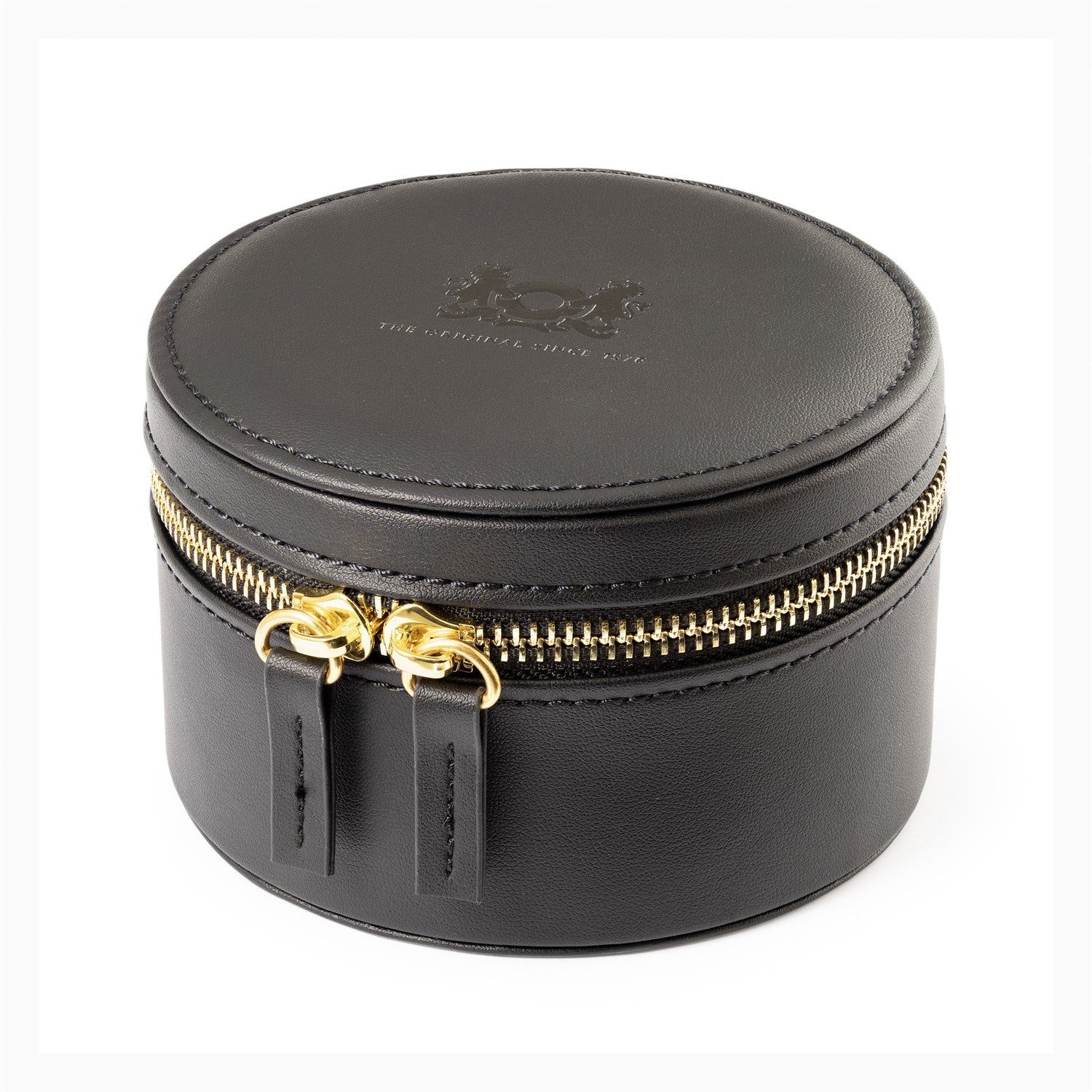 Grazie alle sue dimensioni compatte, la scatola è perfetta da portare con te o per il tuo vanity. Ha un diametro di 11,5 cm e un’altezza di 7,5 cm. La fodera interna in lussuoso velluto di un elegante tono avorio dona un tocco particolarmente raffinato.