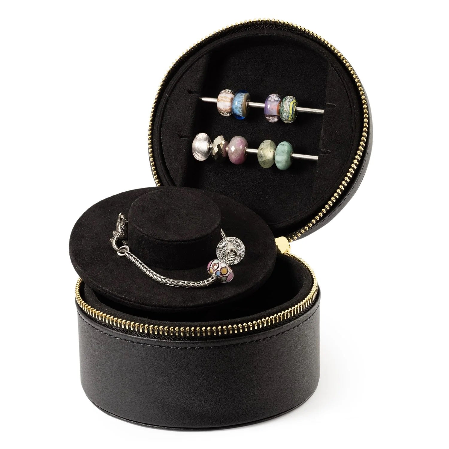 Questa elegante scatola porta gioielli rotonda è stata progettata per conservare e organizzare con stile i tuoi preziosi Trollbeads.