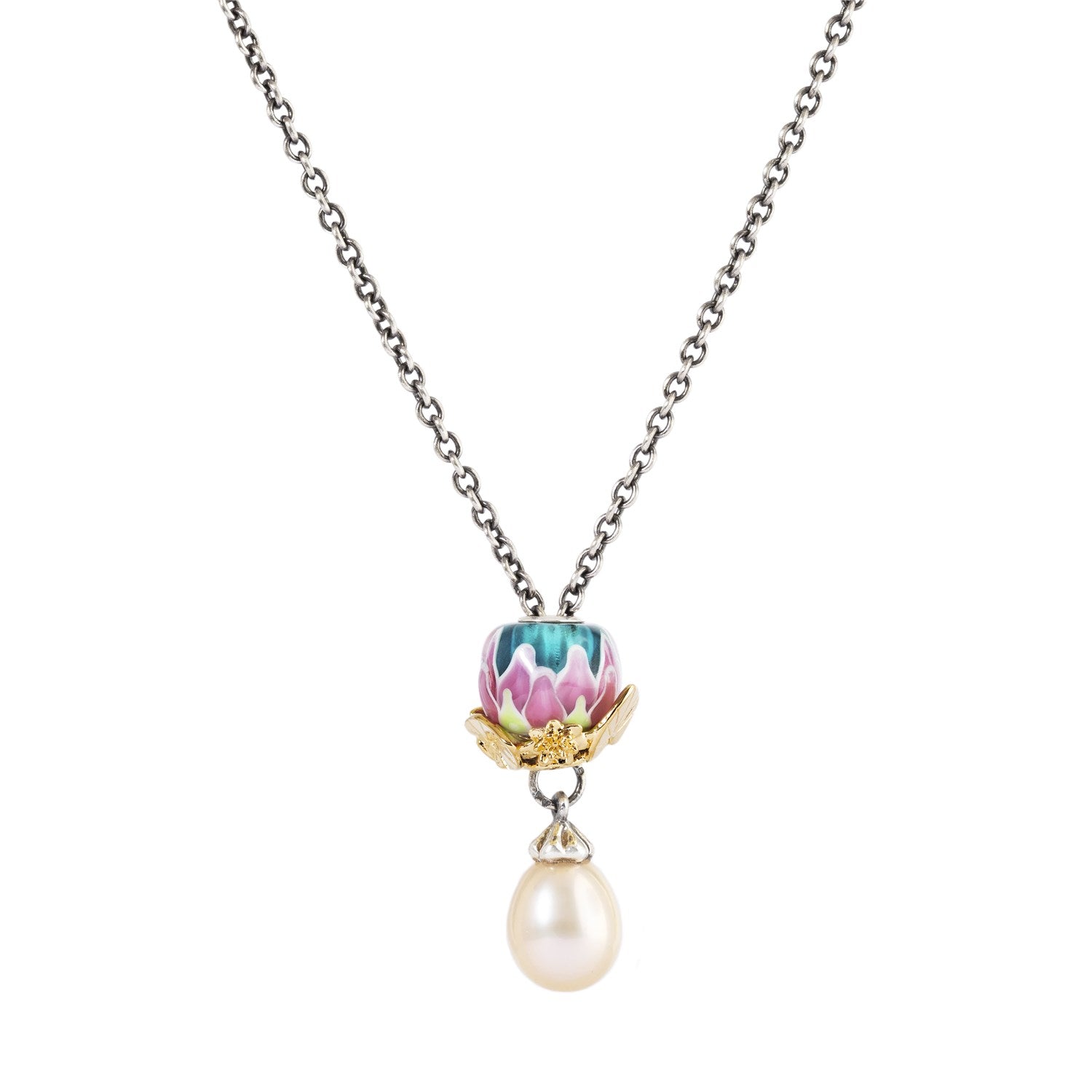 Diese wunderschöne Sterlingsilber-Bead wurde entworfen, um deine Lieblingsbeads elegant zu halten und perfekt in Szene zu setzen. Vier Seerosenblätter sind harmonisch neben einer Seerosenblüte angeordnet. Besonders schön wirkt die Water Lily Cradle am unteren Ende einer Fantasy-Halskette, wo sie deine Lieblingsbeads sanft trägt und umschliesst.